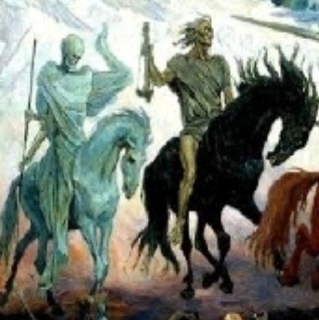 Apo.6:7 Quand l’Agneau ouvrit le quatrième sceau, j’entendis la voix du quatrième être vivant dire: Viens! 8 Et je vis venir un cheval blême. Son cavalier s’appelle « La Mort » et il était suivi du séjour des morts. Il leur fut donné le pouvoir sur le quart de la terre de faire périr les hommes par l’épée, la famine, les épidémies et les bêtes féroces.