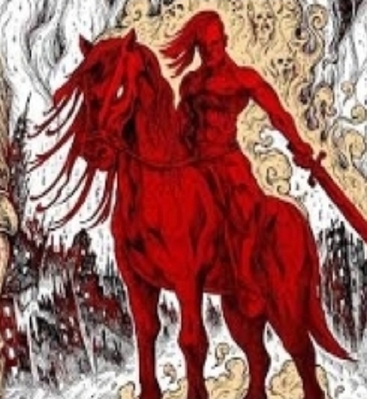 Apo.6:3 Quand l’Agneau ouvrit le deuxième sceau, j’entendis le deuxième être vivant dire: Viens! 4 Un autre cheval sortit: il était rouge feu. Son cavalier reçut le pouvoir de bannir la paix de la terre pour que les hommes s’entretuent, et une grande épée lui fut donnée.
